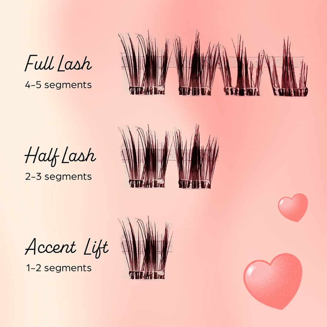 - Half Lash Look – Use 2 segments on the outer corners for a soft, lifted finish.