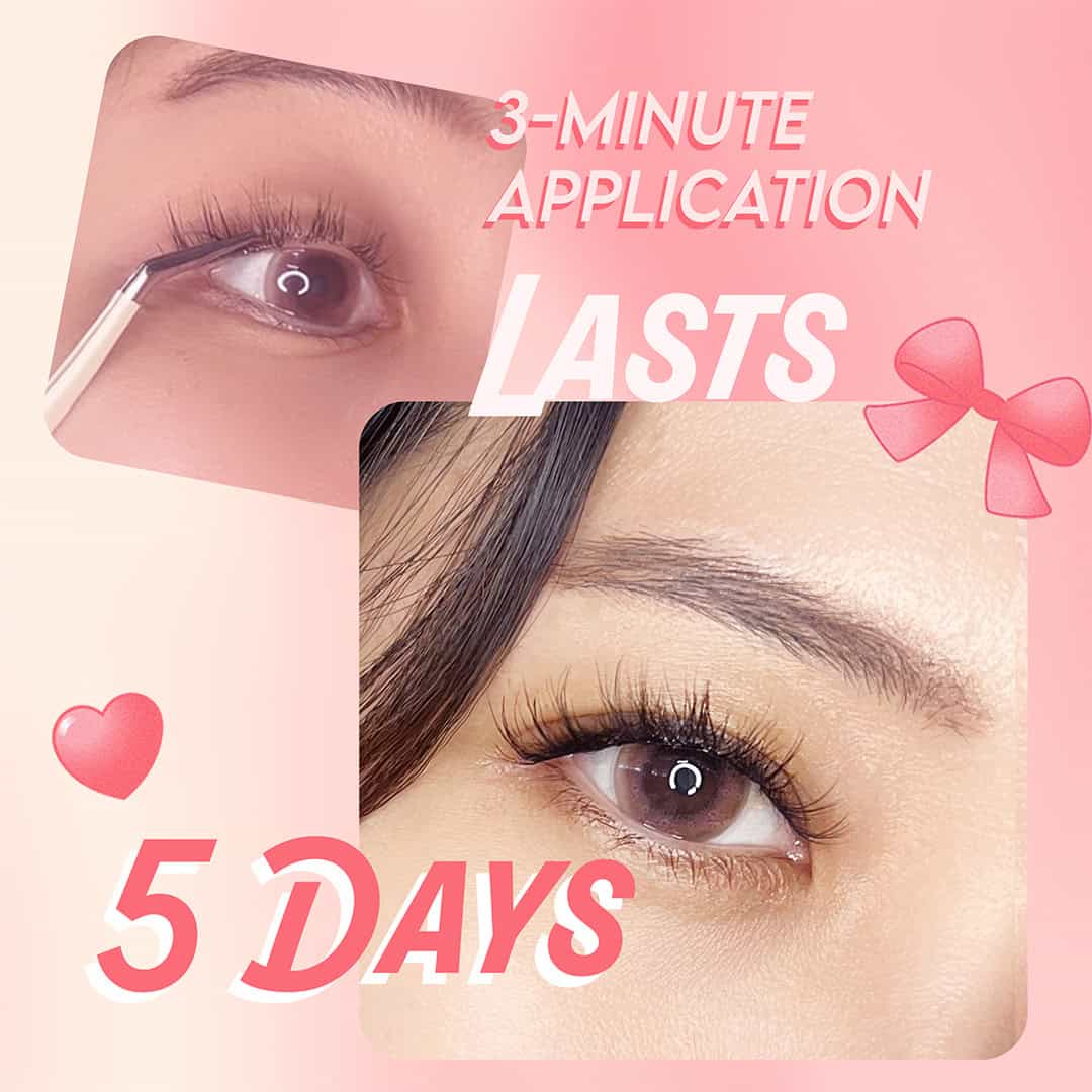 Each wear lasts up to 3 to 5 days, so you do not have to reapply your lashes daily. Just press them on once and enjoy beautiful lashes for days — even through sleep, sweat, and daily wear.