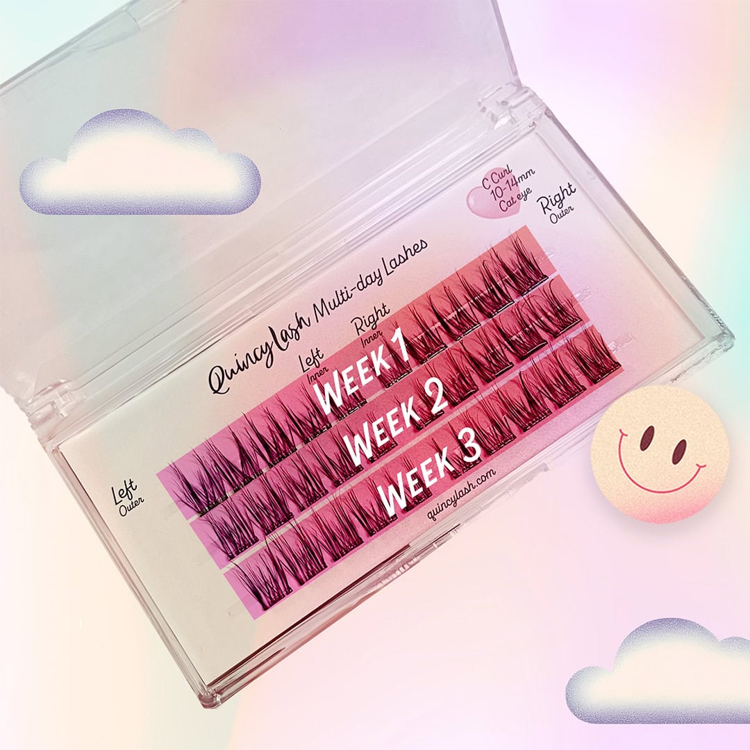 Each kit includes 6 lash strips — 3 for each eye — which is enough for 3 full wears. Most women use only 4 to 5 segments per eye, so you will still have extras left for touch-ups, lighter styles, or even a bonus fourth wear.